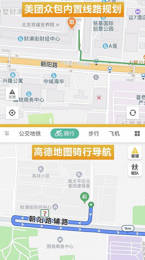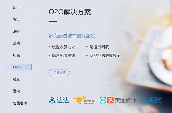 美团众包、蜂鸟众包、达达骑士内置的导航系统均使用高德地图的数据接口,在高德地图的产品宣传页面上,这三个平台被列为O2O行业解决方案的成功案例。