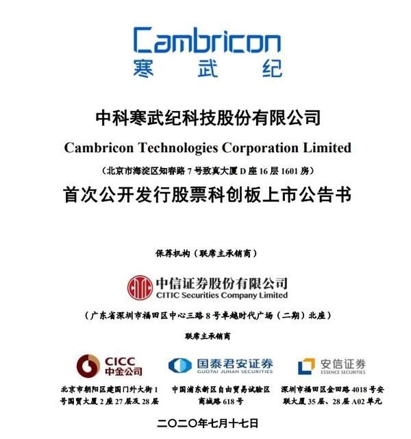 国内首家芯片“独角兽”公司「寒武纪」将于7月20日在科创板上市