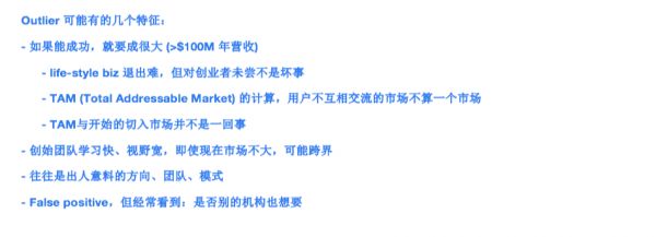我觉得当初如果就揪着他们这个市场来说,是看不出任何名堂的,但是如果真正对贝佐斯这个人信任的话,就像孙正义对马云的信任一样,这个是可能成为outlier的,而且outlier往往是出人意料的方向,出人意料的团队,出人意料的模式。大家都关注的方向,反而最后跑不出什么项目了。