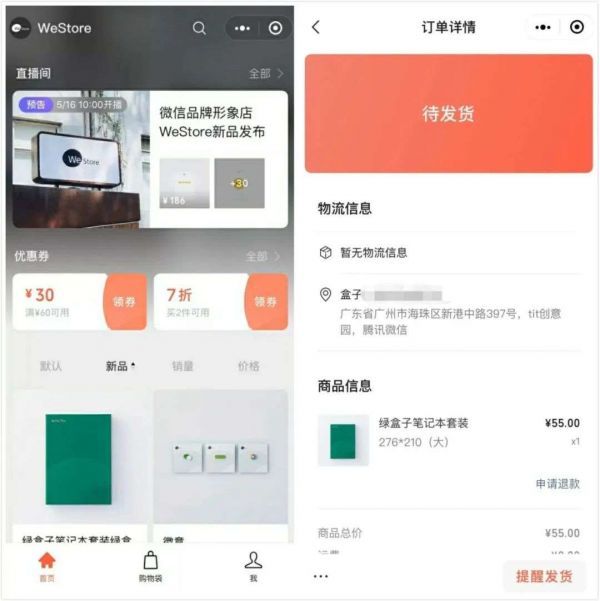 在 7 月 14 日,微信宣布上线「微信小商店」,根据介绍,微信小商店是可以帮助商家免开发、零成本、一键生成卖货小程序。微信小商店具备商品管理、商品交易、订单物流、客服售后等基础能力,并内嵌了直播功能。