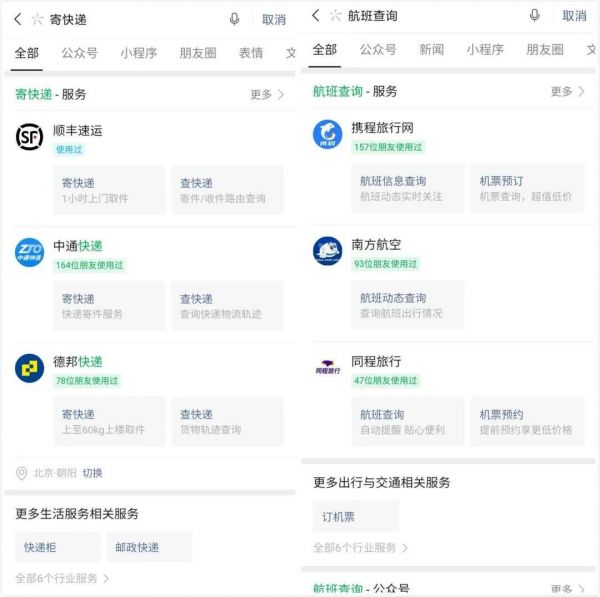 也就是说,用户输入一个航班号,就可以搜索到相匹配的小程序。输入需求,则可精准地连接到具体的服务。这会进一步地释放微信的公域流量的价值。