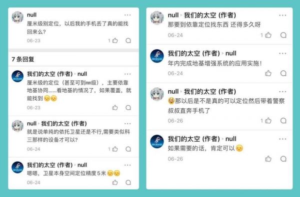知识的普及和新技术的传播,不是单方进行,而是必须在友善的讨论中完成一个良性循环。这正是知乎的长板。在问题下,“我们的太空”与一位知乎用户就“未来北斗能否帮助人们找回丢失手机”的问题,展开了互动。