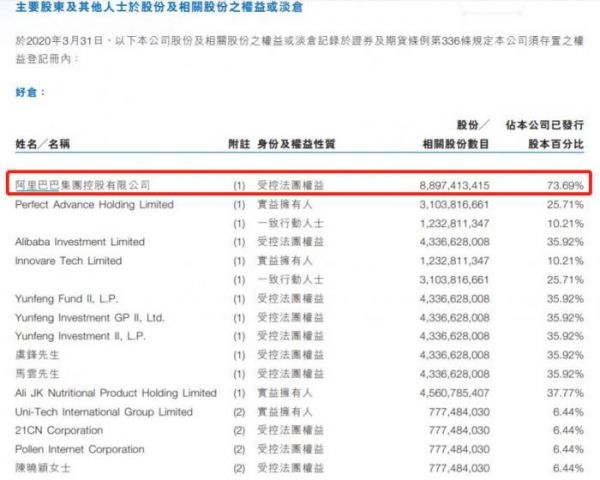阿里健康2020财报显示,阿里巴巴为阿里健康的第一大股东,马云、虞锋均持有股份。