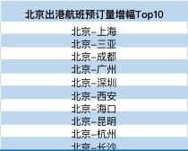 受此影响,北京出港航班预订量也大幅增长。去哪儿网平台上,北京-上海航班预订量增幅最高、其次是北京-三亚以及北京-成都。