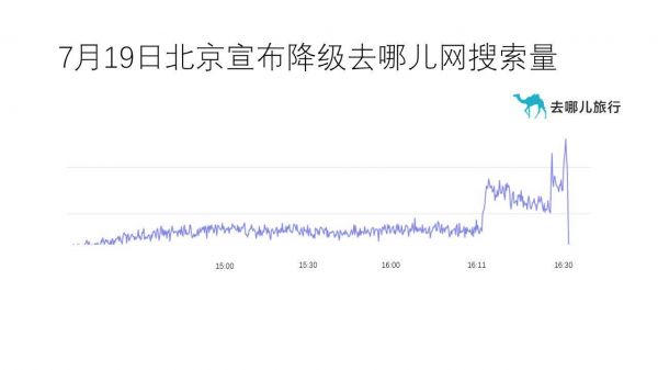 网易科技讯 7月19日消息,北京市政府副秘书长陈蓓宣布将从20日0时起,北京市突发公共卫生事件应急响应级别由二级降为三级,逐步限流开放景区等室内外场馆。去哪儿网数据显示,进出京机票搜索量应声上涨,与前一小时相比增长7倍。