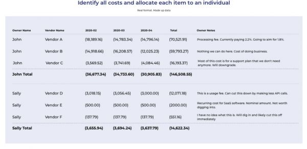 降低成本结构的第一步是确认每一项成本。首先是让财务团队整理了一个简单的电子表格,按照供应商的总成本排序,列出每个月的每一笔成本。