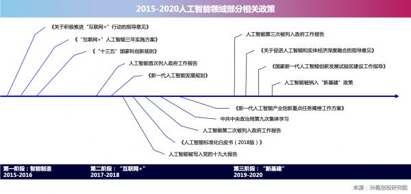 2015年7月,国务院出台《关于积极推进“互联网+”行动的指导意见》将人工智能纳入发展的重点任务之一,要求加快人工智能核心技术突破,标志着专门针对人工智能制定产业政策的时期正式开启。2016年8月,国务院发布《“十三五”国家科技创新规划》,明确把人工智能作为体现国家战略意图的重大科技项目。