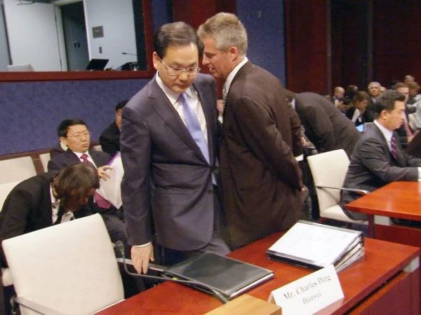 图注:华为美国总裁丁少华和华为美国公共政策副总裁威廉·普拉默在美国国会听证会上