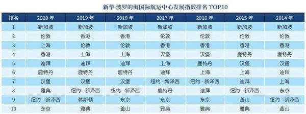 7月中旬发布的《新华-波罗的海国际航运中心发展指数报告(2020)》显示,上海首次跻身国际航运中心前三,仅次于新加坡和伦敦。该报告由中国经济信息社联合波罗的海交易所发布, 从港口条件、航运服务和综合环境三个维度衡量国际航运中心城市的发展水平。