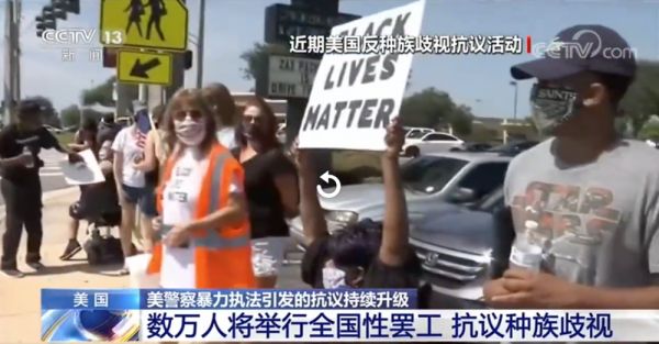 @央视新闻【美国全国将数万人罢工8分46秒】当地时间7月20日,美国数万人将举行全国性罢工活动,抗议美国系统性种族主义。美国服务行业雇员国际工会称,约25个城市的各行各业人员将离开工作岗位8分46秒,这是5月25日非洲裔男子弗洛伊德被白人警察用膝盖跪压颈部的时间。