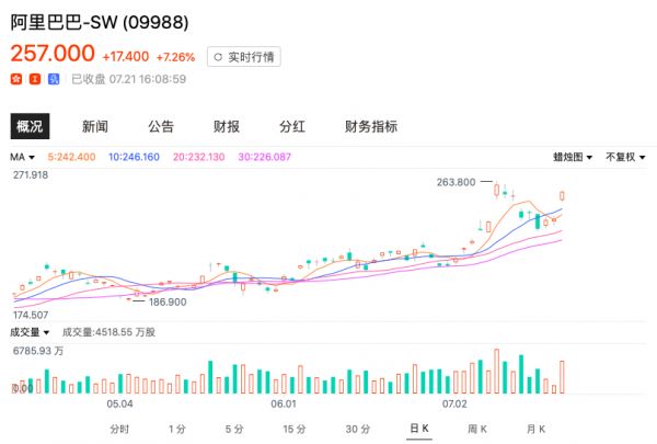 富瑞发表研究报告认为,AH 上市可提振阿里股价。基于蚂蚁集团拥有 13 亿的年度活跃用户,并在阿里巴巴的生态系统中产生协同效应,料可凭借其强大的技术实力重塑金融服务业,重申阿里巴巴为该行业的首选,维持买入评级,目标价为 307 港元。