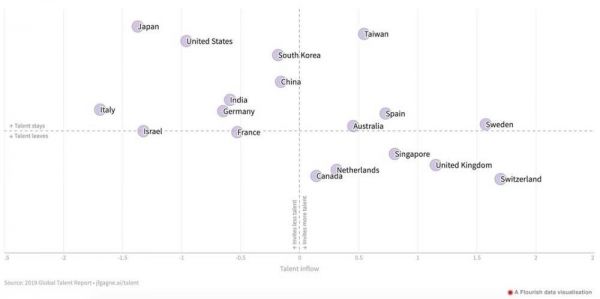 比较各个国家的人才流入与流出