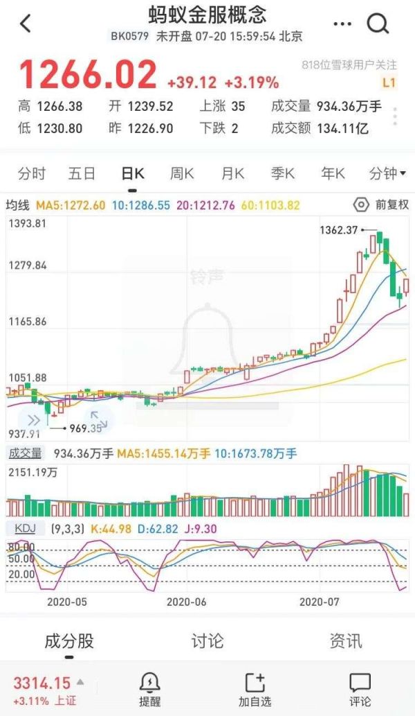 最显著的影响便是相关概念股短时间内会迎来一波拉升。今年春风之下各上市公司股价已经创出新高,随着蚂蚁IPO消息传出,概念股止住回调集体大涨。