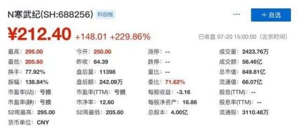 7月20日,中科院旗下初创公司、“科创板AI芯片第一股”寒武纪(688256.SZ)正式挂牌上市,开盘涨288.3%,报250元,最新总市值达1000.25亿元。