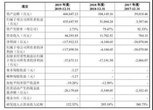 数据显示,2017年度、2018年度、2019年度,寒武纪分别确认了研发费用2,986.19 万元、24,011.18万元和54,304.54万元。寒武纪自2016年成立以来,每年研发费用占营收的百分比都超过了100%。