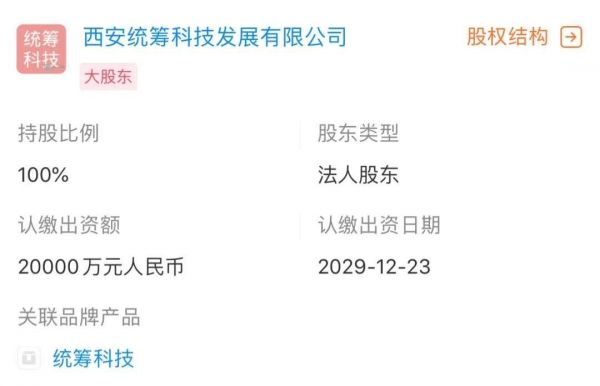 只要去查一下该科技公司的股东就能发现,其大股东西安统筹科技发展有限公司其实只是陕西省西咸新区沣东新城管理委员会,是政府为了招商引资而专门成立的一家“科技公司”,并以这家“科技公司”的名义来购买寒武纪芯片。