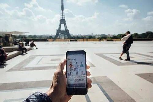 2020年6月10日,法国巴黎,智能手机上显示的追踪新冠病毒传播途径的一款手机应用程序。