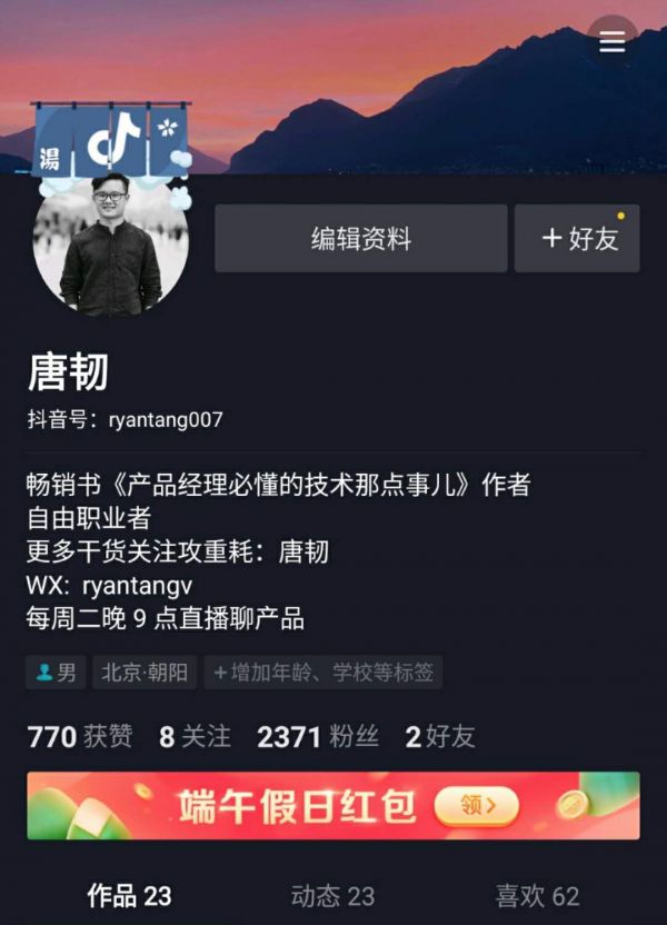 而在抖音,我现在的粉丝量是 2371 人,但平均播放量只有粉丝量的 50% 到 60% 的样子。