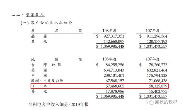 但是现在,日本手机、照相机等消费电子,以及家电产业悉数没落,使得日本企业对芯片的需求并不大。台积电2018年和2019年报告显示,日本的芯片制造需求排在台积电地区客户的第5名,甚至落后于中国台湾地区,只有中国大陆地区的1/3、美国的不到1/10,而且还呈现进一步萎缩趋势,2019年相比2018年减少了大约2%。