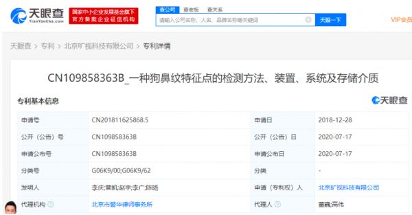 根据第三方平台天眼查数据显示,北京旷视科技有限公司在2018年底就开始申请,并于今年7月17日正式公布这项专利。