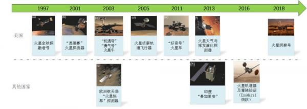国际火星探测代表性任务发射时间(图片来源:NASA、ESA、印度空间研究组织(ISRO))