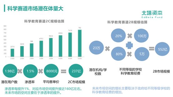 04 科学教育赛道发展阶段类似15年前的数学和英语,2C市场进入初级规模化,2B市场开始成型