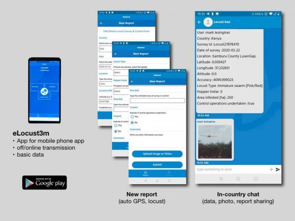 在监测和预警环节,FAO开发了一个名为eLocust3的手机程序,方便各国政府的专业人员向沙漠蝗虫信息服务(DLIS)中台实时汇报蝗虫的最新进展,以供专业人员分析趋势及为潜在风险国提供预警。