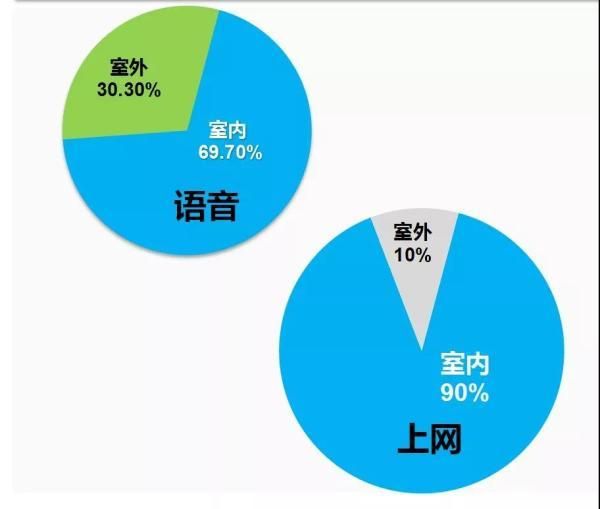 早在4G时代,日本的运营商NTT DOCOMO就经过研究得出了70%以上的移动通信话务发生在室内的结论。细分来说,69%的语音业务,90%的数据业务是发生在室内。
