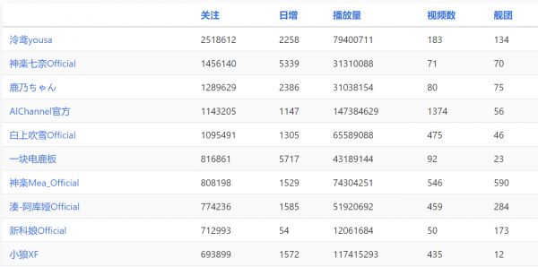 同期,日本的很多虚拟UP主也在出海,B站成为他们在中国的首选平台,国内虚拟UP主市场随之被带动起来。这也影响了B站目前的虚拟UP主生态,截至2020年7月22日,B站排名前20的虚拟UP主中,有一半都来自日本。