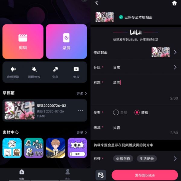 哔哩哔哩B站首次推出了移动端视频剪辑工具。