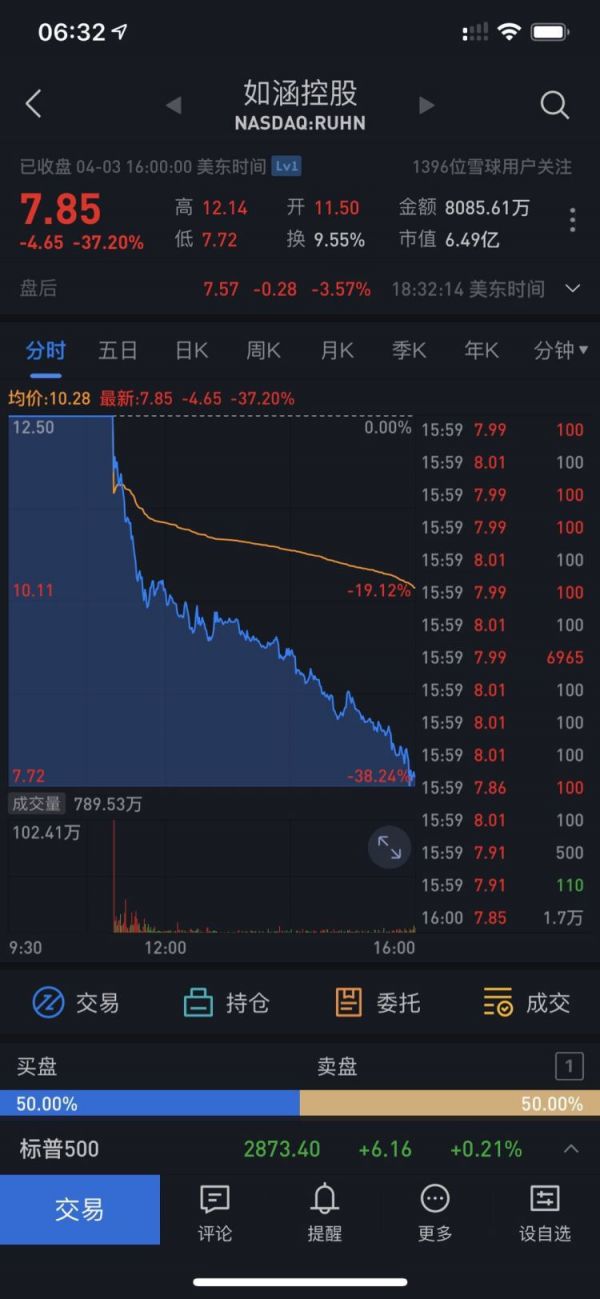 PingWest品玩4月3日讯,昨日晚间,网红电商第一股如涵在纳斯达克挂牌上市,开盘价为11.5美元,跌破发行价12.5美元,直接下跌8%,市值为9.5亿美元。盘中股价突然持续下跌,收盘报7.85美元,跌37.5%,市值跌至6.5亿美元,较开盘时缩水近三分之一。