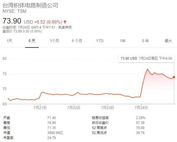 由于英特尔还在声明中暗示了台积电将在未来几年继续保持制造优势,台积电股价周五上涨了9%以上。