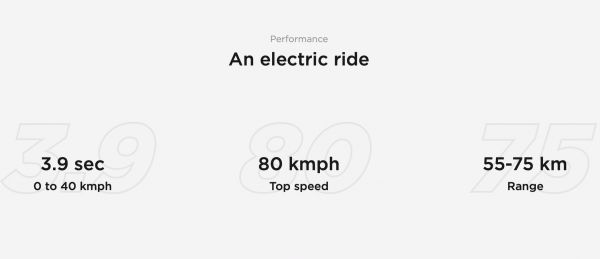 Ather 450X 的最高速度可以达到 80 公里每小时,它的锂离子电池组有三年的质保,容量大,充电速度快,而且还能防水防尘,足以满足消费者的需求。