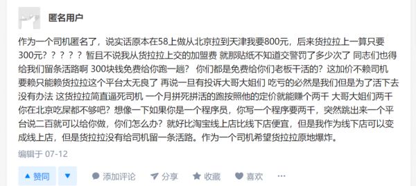 一方面,由于网络平台的低价行为,同城货运的价格已经被压到了一个极不正常的价格,司机的利润空间也相应的受到挤压。