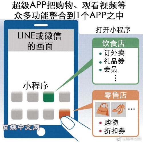 印尼大型网约车企业Go-Jek也正在以自身APP为窗口,扩大手机结算、代购、视频发布等多种服务。日本的LINE从7月开始受理小程序的注册。