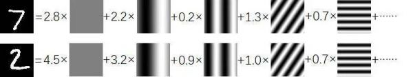 因为任何一张照片都可以看作是很多不同频率条纹的组合叠加,区别在于每种条纹的“配方比重”不同,就如同每一品牌奶粉都有各自的成分配比,傅里叶频谱强度就透露给你了这一重要配比信息,比如不同字母或者数字的图像的“成分配比”就大不相同,便于将它们识别出来。研究者先从大量散斑图像中恢复出这一频谱信息,进而再从频谱信息中猜测出物体的模样,这样,隐藏在拐角处的物体就“原形毕露”了。