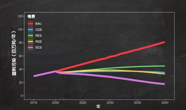这个模型能将我们目前的垃圾生产、使用和管理与未来的预测进行比较。模型显示,如果我们什么都不做,任由事态继续发展(BAU情景),到2040年,从全球范围内来看,每年从陆地进入水体的塑料量将会增加2.6倍,从约1100万吨增加到2900万吨。如果把这些塑料平摊在全世界的海岸线上,这相当于每米海岸线就产生50千克的塑料。由于塑料在海洋中并不会被降解,到2040年,海洋中的塑料累积量可能达到6亿吨。与此同时,留在陆地系统中的塑料污染也会增加2.8倍。