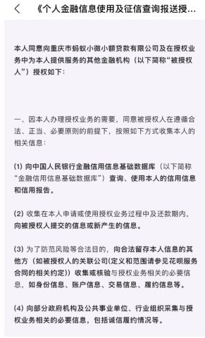 从《个人金融信息使用及征信查询报送授权书》来看,花呗服务的提供方为重庆市蚂蚁小微小额贷款有限公司,这也就是花呗上征信的机构。对此业内人士也表示,在不逾期的情况下,对于白户来说,上征信并不是坏事,也会留下良好的还款记录。但对于频繁使用网贷、借款的人来说并不是什么好事。