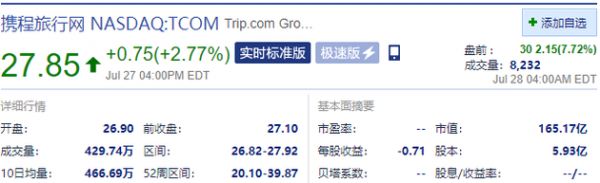 携程盘前涨超7% 有报道称其计划从纳斯达克退市