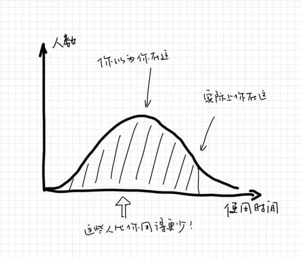 第二,如果我们将所有用户的日均使用时间列出来,那它应该是一个这样的曲线——