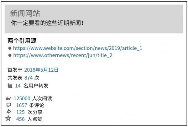 上图展示的就是论文作者所设计的一个助推机制。我们可以看到除了正常的信息展示以外,还提供了信息来源、浏览量、评论数、点赞数等。