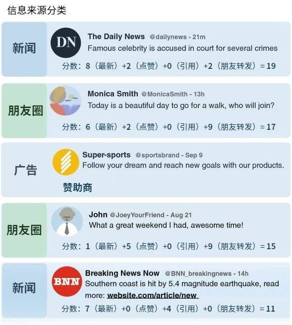 图4:信息来源分类。信息的分数=最新+点赞+引用+朋友转发