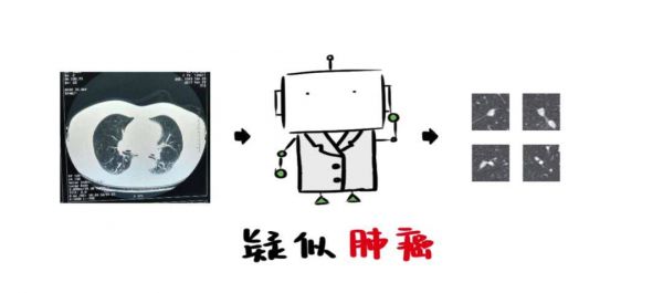 以肺癌为例,肺结节是早期肺癌的标志之一。通过学习放射科医生标注好的影像数据,机器就能快速判断出肺结节的位置及类型,为进一步确诊提供依据。