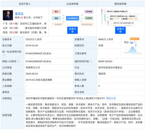 2019 年 3 月,曾学忠离开紫光选择创业,他创立了汇芯通信——广东省未来通信高端器件制造业创新中心的依托公司。