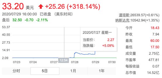 消息一出,当天柯达盘中股价一度暴涨350%。昨日涨幅更是扩大到537%,盘中9次触发熔断。