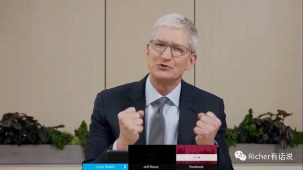 数小时的听证会刚刚结束,最后,试图猜测一下结局的走向。听证可能还会继续数场,在20年前国会诉微软的案件上,最终不了了之以一个API接口作为结束,微软死里逃生并不代表着今天这四家企业会逃过一刀。不出意外,这几家企业会或多或少被迫作出相应调整。而今天的四位辩手,库克话不太多、劈柴结结巴巴,小扎油滑甩锅,贝索斯最可怜,有些问题答不上来只能认。整体来看我的感觉Amazon和Google可能会受到影响偏大。