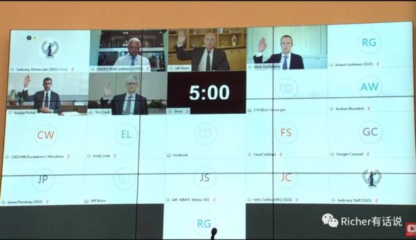 2020的历史车轮在今天迎来一个小高潮,起码要载入互联网史册。今天,华盛顿国会山举办了继90年代微软反托拉斯法听证会之后最大的一次听证会,列席听证的是美国四大科技企业的当家掌门人:亚马逊贝索斯、苹果库克、谷歌皮查因和脸书的扎克伯格首次同框直播。可以说,这次听证牵动着全世界互联网人的目光。我也顺便练习了一次托福听力。