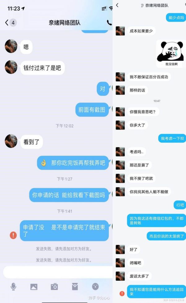 北京一女子在知乎上发表受骗文章,被推荐一网络团队进行维权,结果骗款未拿到又被骗了2000余元。而这个名叫奈绪网络团队的长期活跃在贴吧和知乎这种地方并进行宣传。