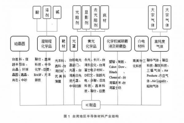 台湾地区的半导体产业,基于台积电产生。而其半导体电子材料产业主要是以硅晶圆、光罩、光阻、化学机械研磨液与湿式化学品等次产业所组成。包含硅晶圆、光罩、光阻、化学机械研磨液与湿式化学品等材料厂商家数约50家,从业人数约为16330人,研发占整体营业额的比重平均约为1.7%。