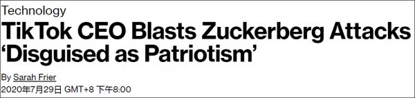 TikTok CEO批评扎克伯格把攻击“伪装成爱国主义” 报道截图